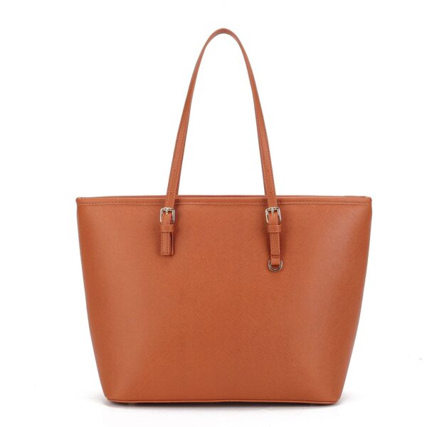 Product Description: This is a spacious everyday tote with a textured monogram design, sturdy straps, and a cute teddy charm perfect for work, school, or travel.